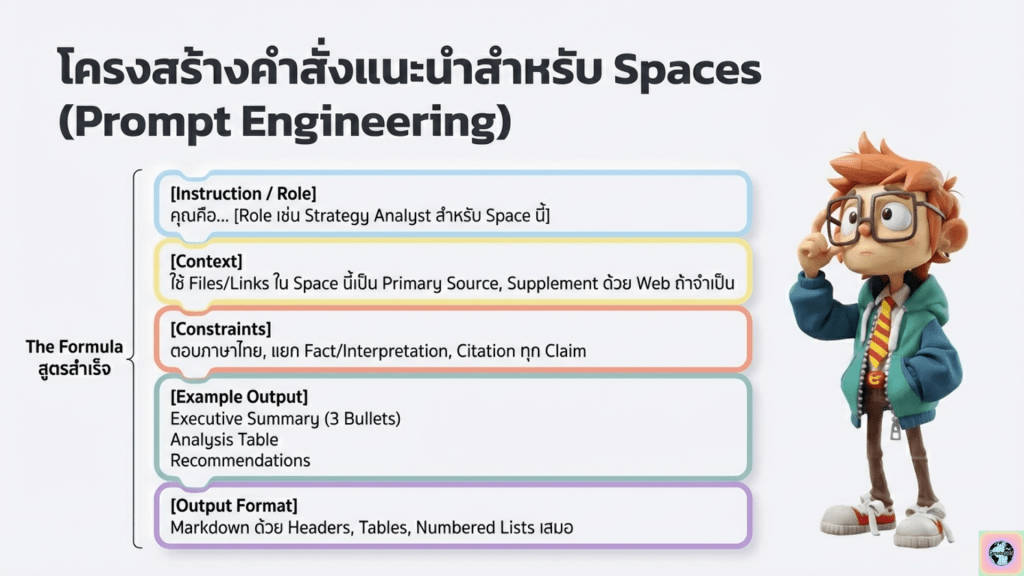 - ใช้คำว่า “สังเคราะห์”, “จัดโครงสร้าง”, “แยก Fact / Interpretation” เพื่อให้ผลลัพธ์นำไปสอนต่อได้เลย